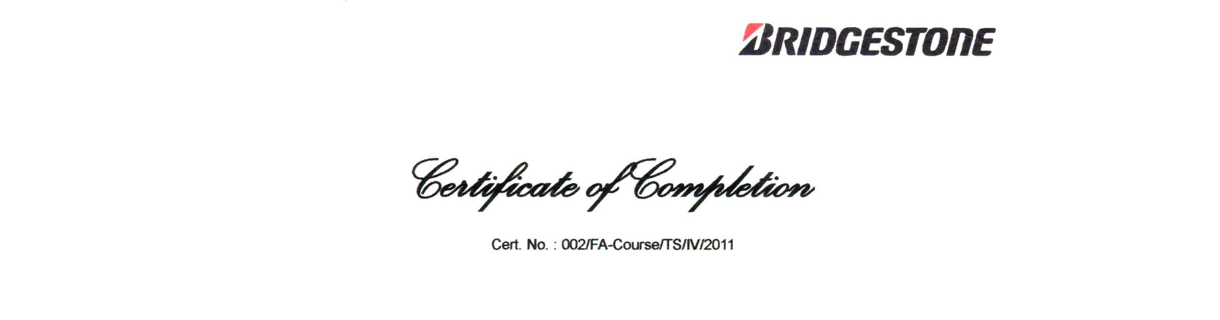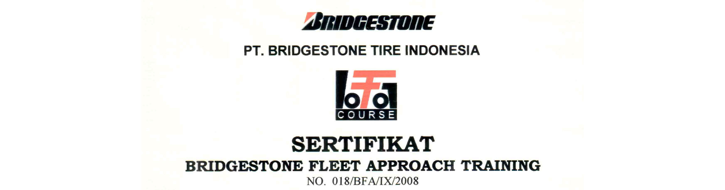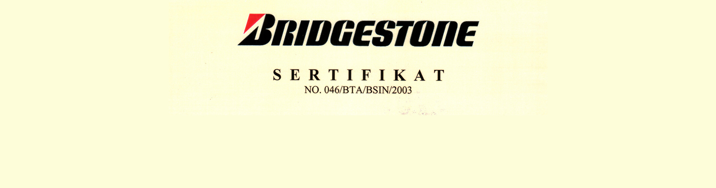 Sertifikat Bridgestone 2003 BTA