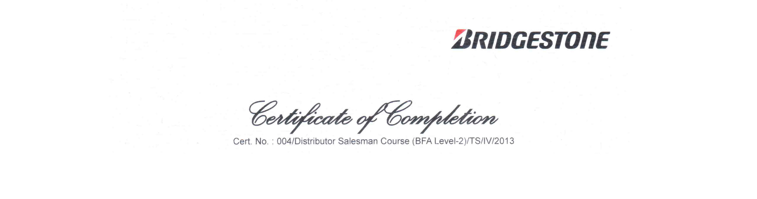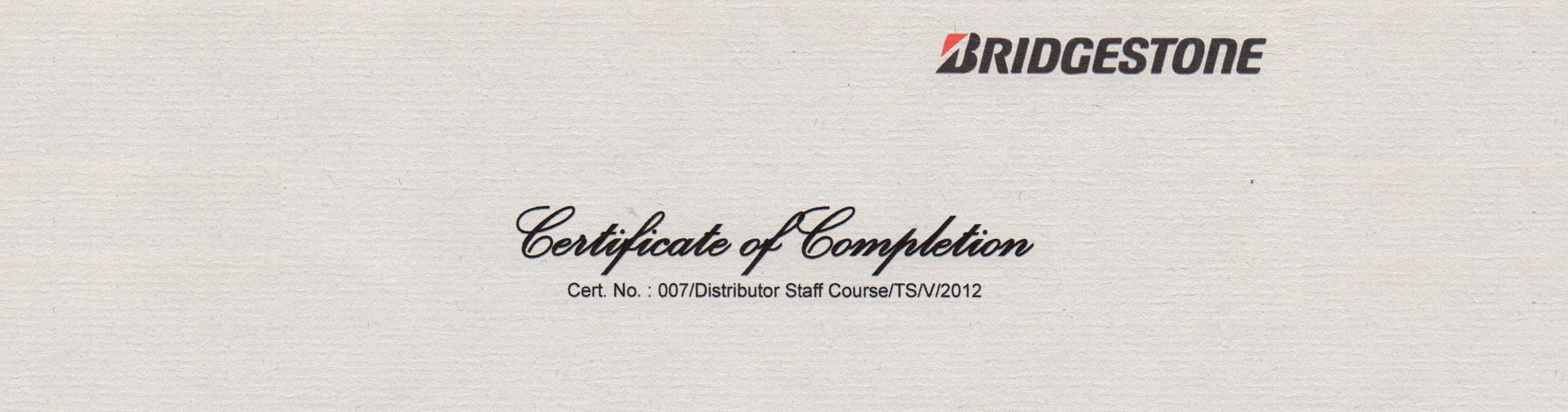 Sertifikat Bridgestone 2012 Distributor Staff