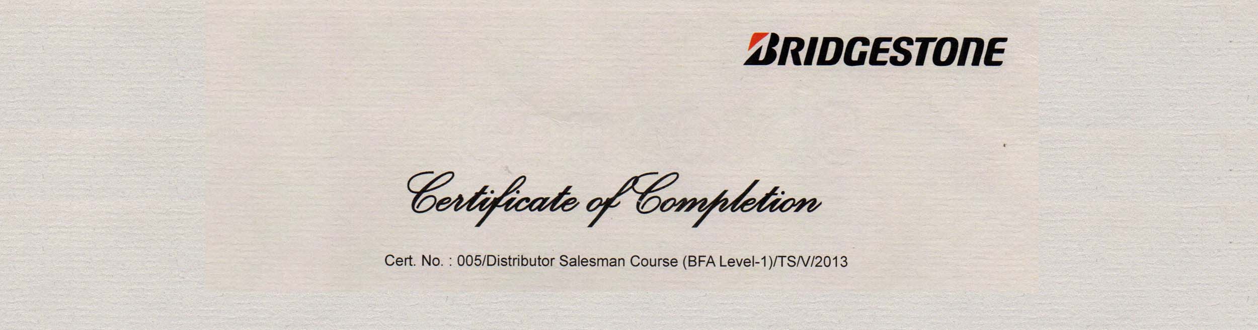 Sertifikat Bridgestone 2012 Distributor Staff
